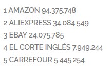 Estas cinco primeras marcas tienen un ticket medio de 200€, (¡quien los pillara!), cuando el ticket medio en todo el comercio electrónico español más frecuente es entre 20 y 50€.