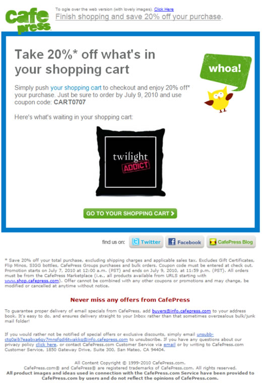 Cafepress.com y Overstock.com utilizan esta fórmula como podeis ver en la imagen y, si la utilizan, les debe ir bien.