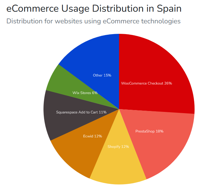 A nivel de España también es el CMS más usado, seguido de Prestashop y Shopify.